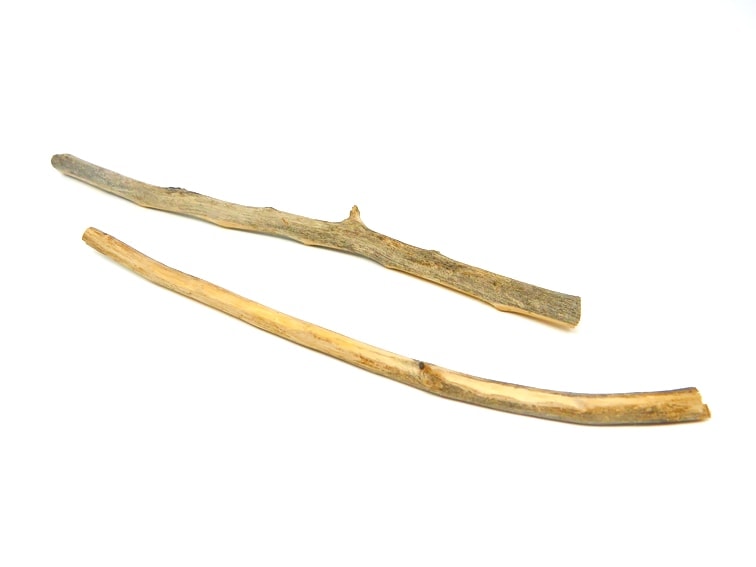 El primer paso es buscar ramas secas de algún árbol seco y caído o de alguna poda. Los trozos de madera seca que hemos escogido son finos y alargados y, en función del tamaño, necesitaremos más o menos ramas. Nosotros cogimos un par de ramas de unos 10 – 15 cm de longitud.
