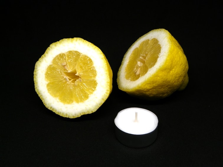 Lo primero que vamos a realizar es cortar por la mitad el limón. Con una de las mitades del limón vamos a hacer un portavelas que, además de repeler a las moscas y mosquitos, conseguimos crear un objeto decorativo.