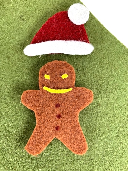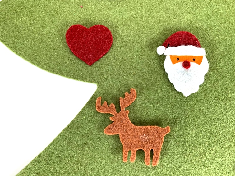 De este modo, podemos enganchar cada adorno en el árbol de Navidad hecho con fieltro.