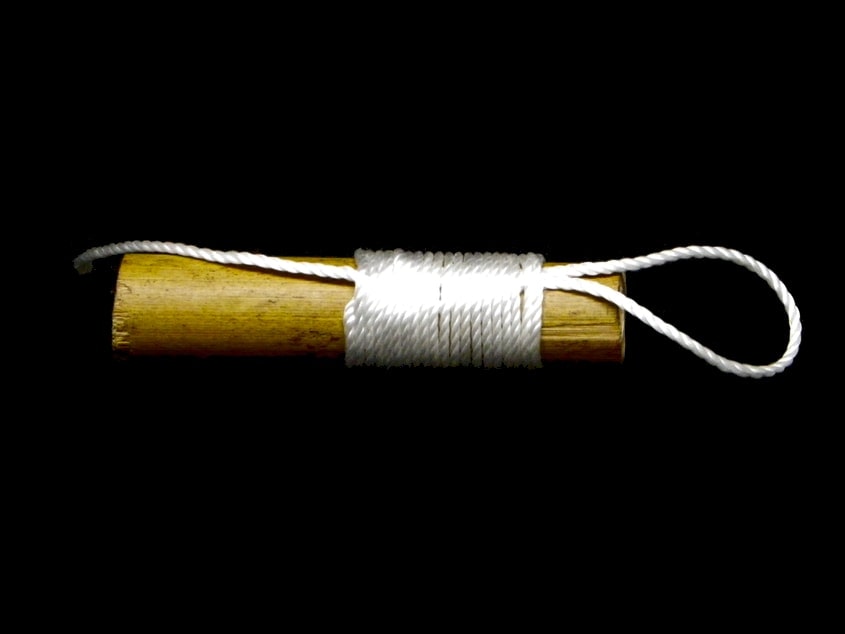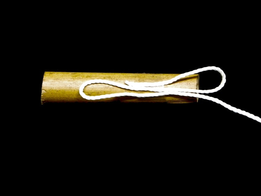 Por otro lado, podemos encordar y crear un colgante en un silbato hecho de bamboo o cualquier otro objeto con forma cilíndrica.