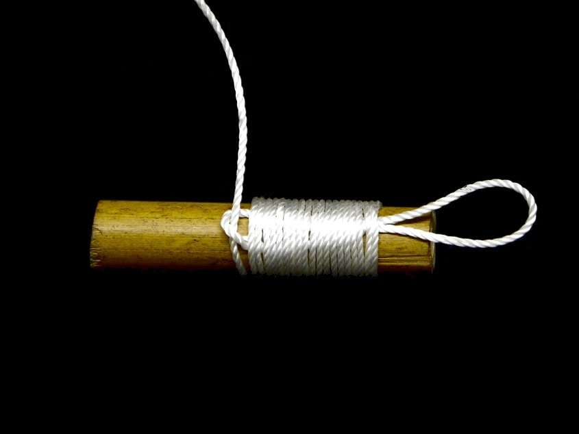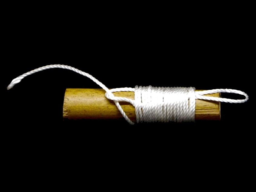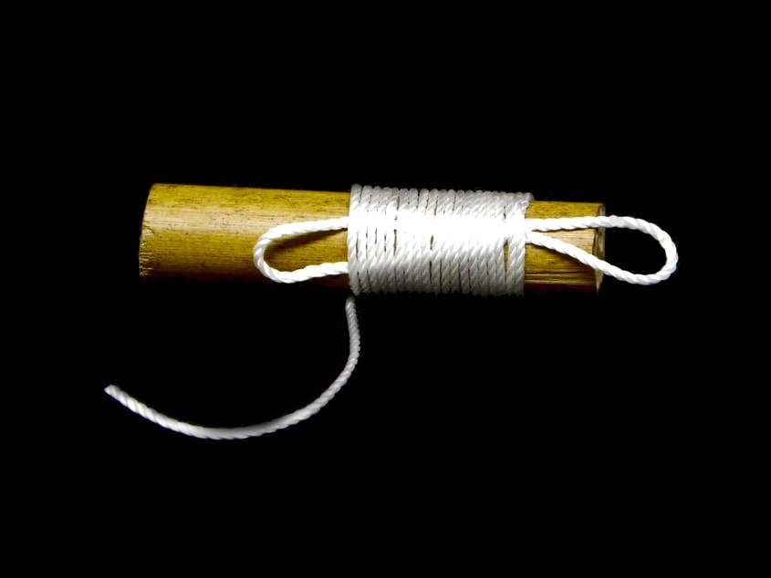 Lo primero que tenemos que tener en cuenta es la longituda de la cuerda que utilicemos para realizar el nudo de encordado. La cantidad de cuerda que usemos dependerá de la anchura del objeto que vayamos encordar.