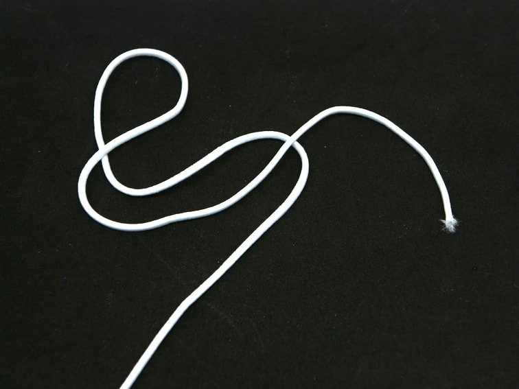 Para concluir con el parche pirata, necesitamos un cordón fino y elástico para poder colocarlo en la cabeza. Una vez tomadas las medidas que necesitamos de cordón elástico, se hacen dos cortes pequeños en cada extremo del parche.