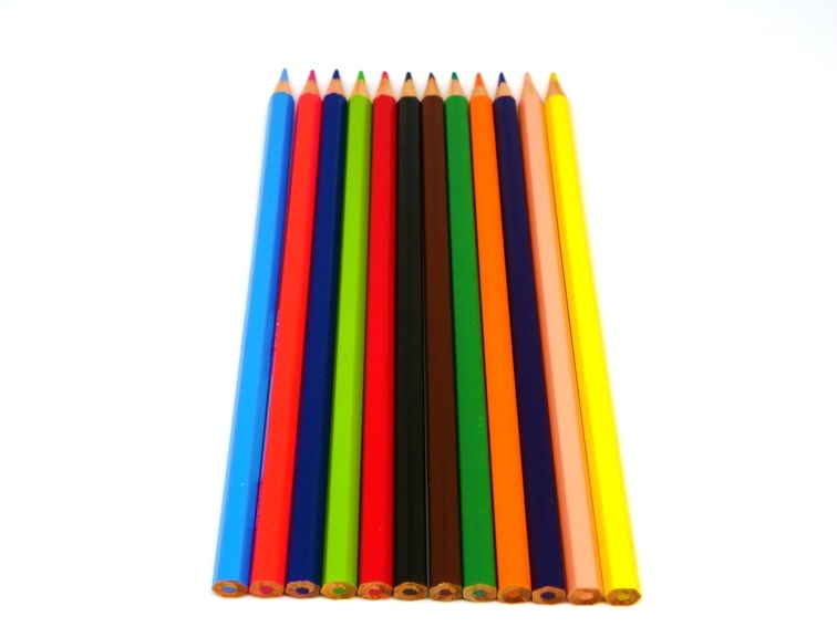 Si queremos usar lapiceros de colores ya usados, tenemos que cortar el listón a la medida (no exacta) de los lapiceros.