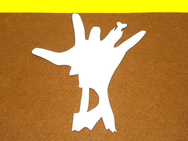 En el caso de la mano desgarrada, la figura tiene como color base el marrón claro, y para resaltar los tendones y la falange que está al descubierto, usamos fieltro de color amarillo para que resalten y tenga ese aspecto de carne podrida.