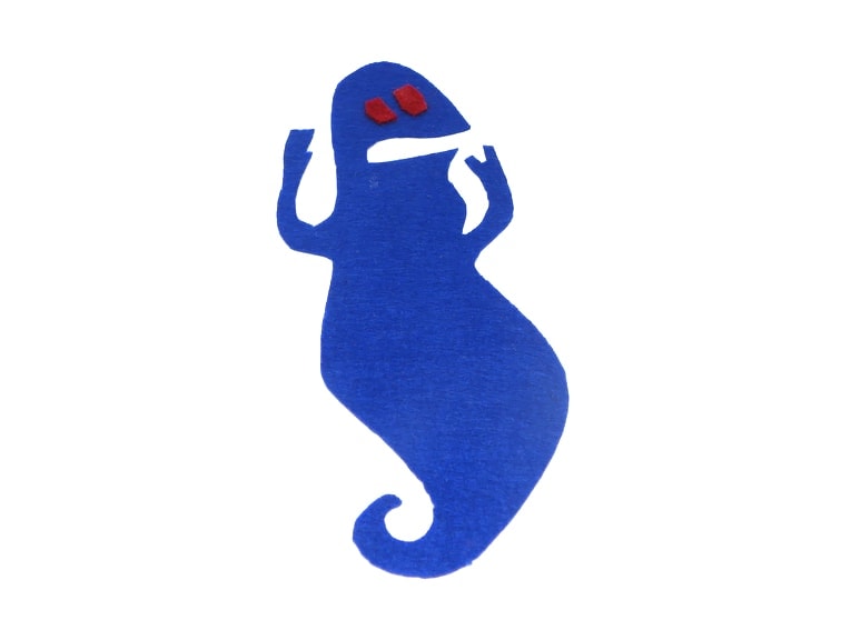 El siguiente paso que vamos a realizar es, añadir detalles a las figuras con trozos de fieltro de distintos colores al color base usado para hacer el contorno de la figura. Por ejemplo, para el fantasma vamos a usar unos pequeños trozos de fieltro de color rojo para hacer los ojos.