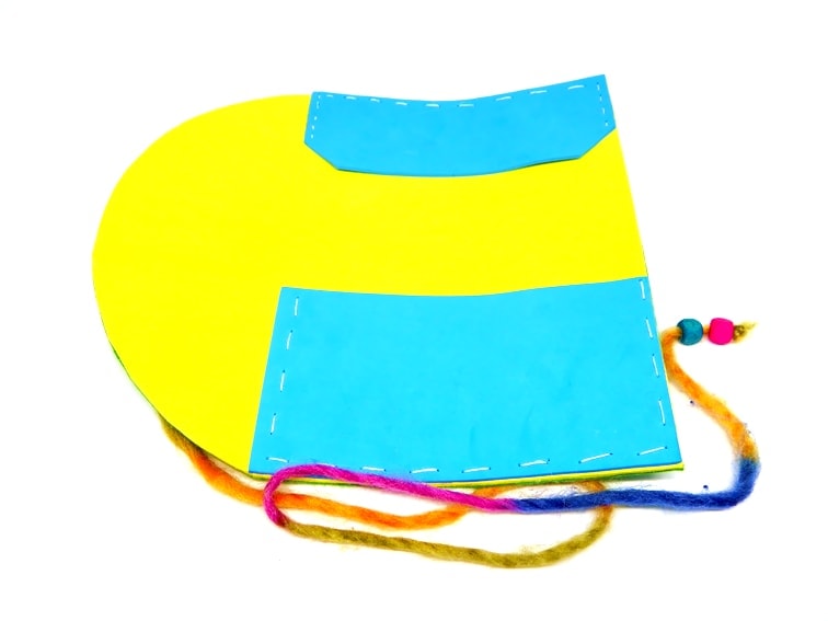 Para hacer el cierre del estuche, sólo se necesita un rectángulo de goma eva del mismo tamaño que el corte que hicimos en la pieza de fieltro y un poco de cuerda o cualquier otro material. En nuestro caso, usamos un poco de hilo grueso de lana de colores.