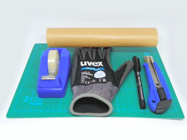 También necesitamos un cúter que tenga en buen estado el filo (sin mella). Cuando trabajemos con algun objeto cortante, en este caso el cutter, nos pondremos unos guantes anticorte para proteger nuestras manos de posibles cortes.