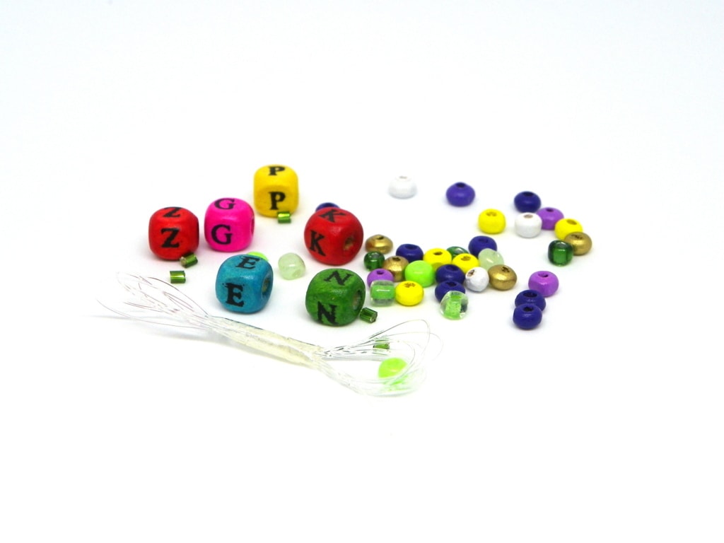 Con estos materiales vamos a hacer pulseras identificativas para niños de manera muy sencilla y entretenida con multitud de cuentas de colores, que podemos personalizar en consonancia con los gustos de los más pequeños de la casa.