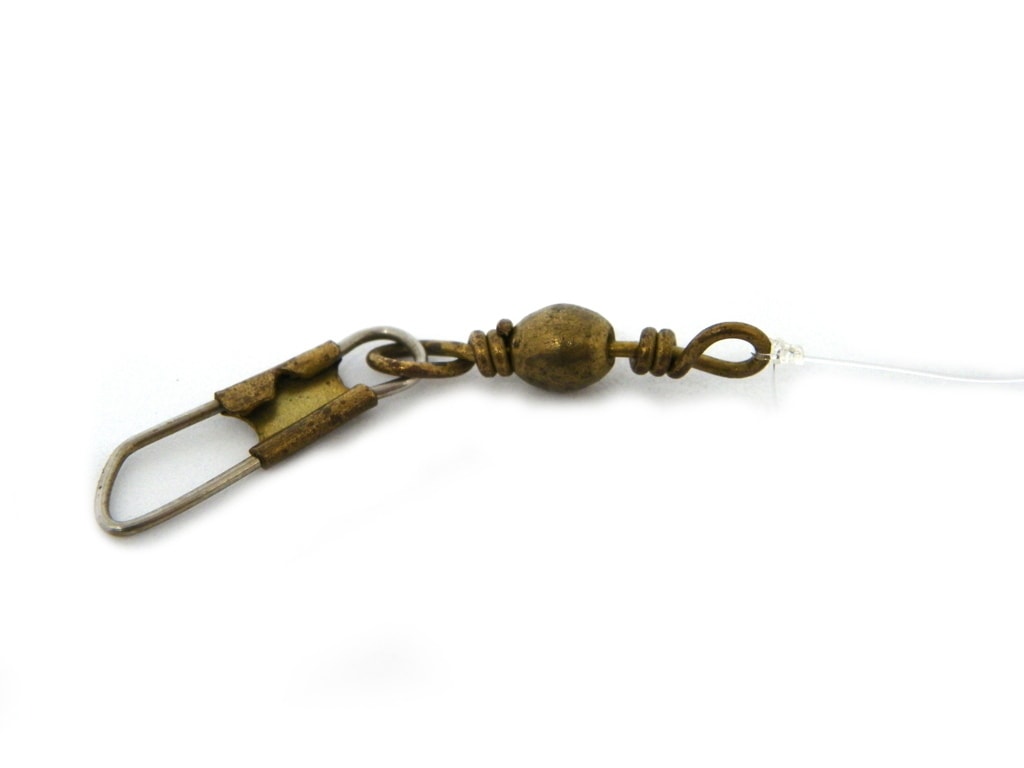Tras tomar las medidas de la muñeca, tomaremos un extremo y realizaremos el nudo Clinch para sujetar el hilo elástico al emerillón. Este nudo es autobloqueante, es decir, una vez que lo hagamos será muy difícil que se deshaga.