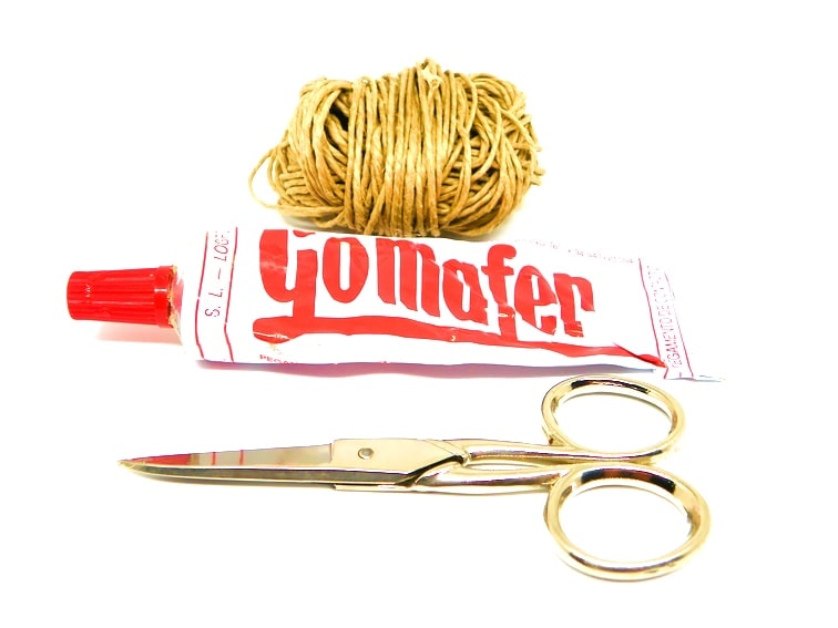 Ahora, para hacer el asa de donde se colgara del llavero el pequeño estuche, cortamos un trozo de cuerda de nailon a la medida que creamos oportuna.