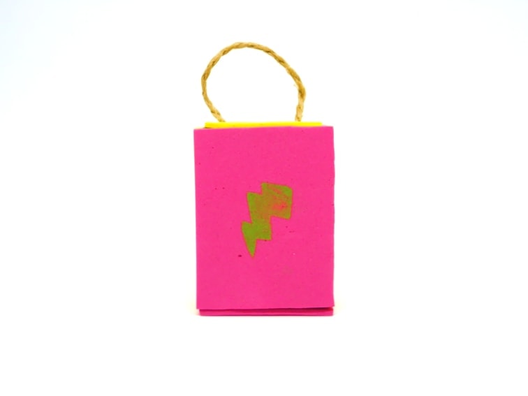 Segundo paso: Añadir un asa y pegar los trozos de goma eva a la cajita de cartón