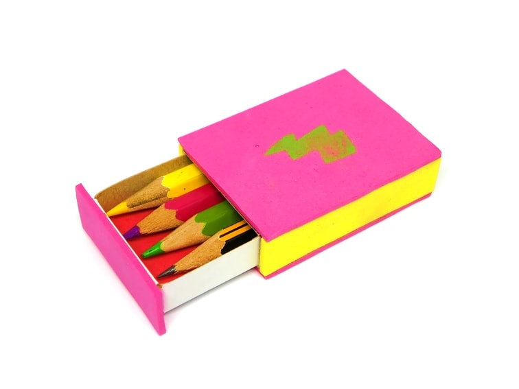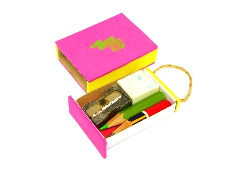 Para ello, vamos a reutilizar una pequeña caja de cerillas, la cual vamos a transformar en un estuche reducido que podemos colgar del llavero. De este modo, podemos guardar de forma ordenada, pinturas y otros objetos pequeños.