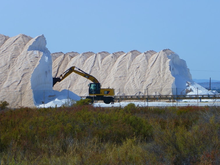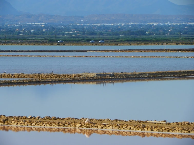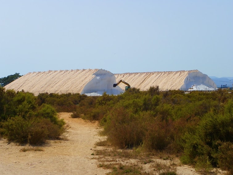 Lo primero que nos llama la atención son unas montañas de sal de la explotación salinera de Brast del Port que se extiende por el Parque Natural de las Salinas de Santa Pola en armonía con el humedal protegido.