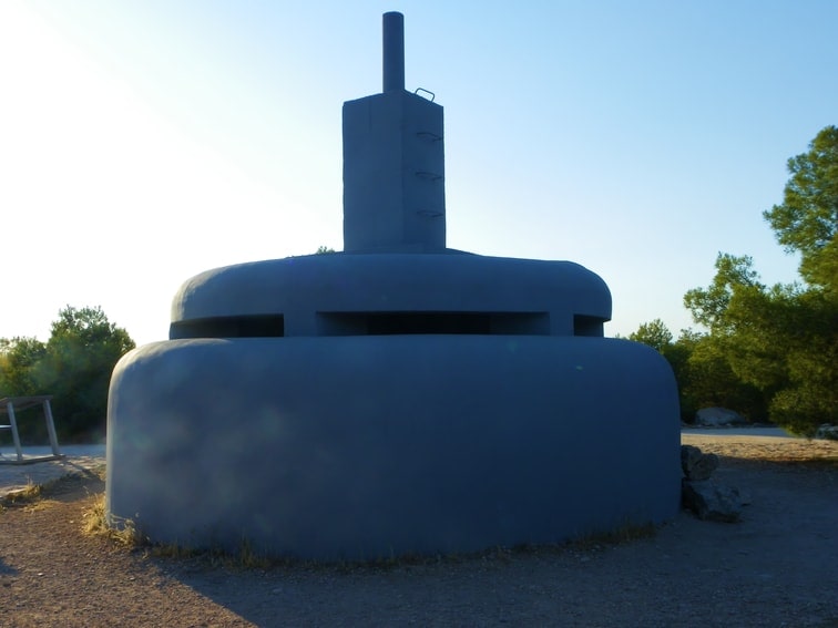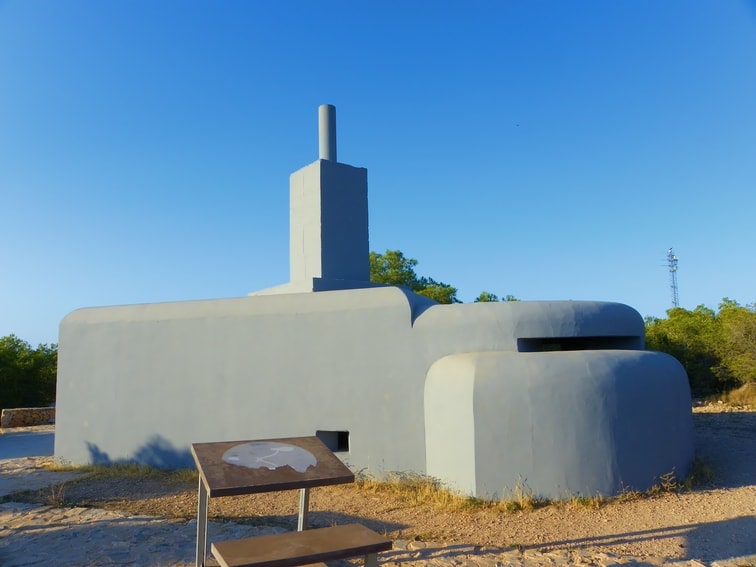Lo primero que vemos a lo lejos es el búnker de telemetría que se encuentra restaurado y, en la parte superior, hay un vértice geodésico que nos indica la altura exacta de ese punto sobre el nivel del mar.
