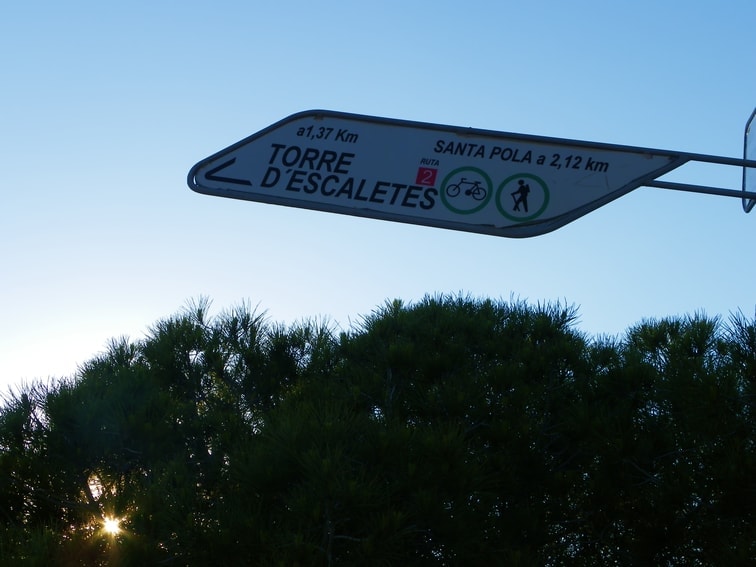 El camino se encuentra señalizado y los carteles nos indican los kilómetros que faltan hasta llegar a la torre de Escaletes, nuestra última parada en esta ruta por el arrecife fósil.
