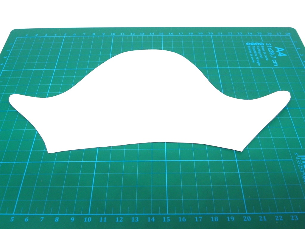 Una vez hechas las plantillas, simplemente tendremos que ponerla sobre la lámina de goma eva. Empezaremos a recortar las piezas para el sombrero.