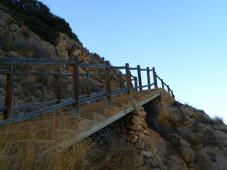 Al comenzar el ascenso por las escaleras en zig-zag, es recomendable subir despacio, ya que hay bastantes escalones y la irregularidad del terreno hace que el esfuerzo sea mayor, y si a esto le añadimos el sol y el calor, el desgaste será mayor.
