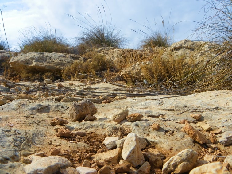 Además, hemos podido observar la morfología y las rocas coralinas fósiles, la vegetación como el tomillo silvestre, el esparto y otras plantas parecidas a las suculentas que crecen entre las rocas y las grietas y que tienen tonalidades ocres similares a la tierra del entorno.